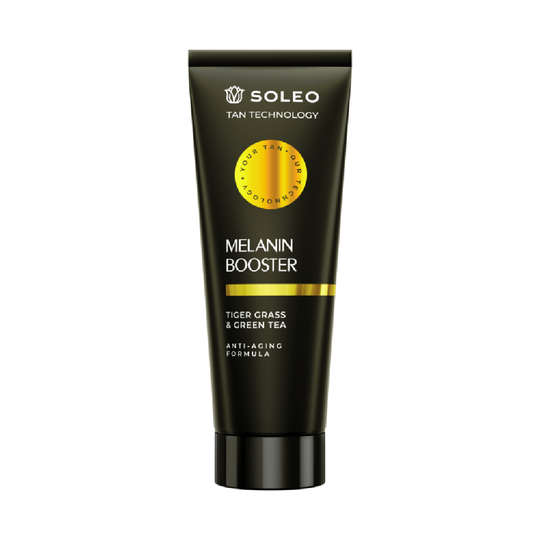 Soleo Tan Technology Melanin Booster është një mënyrë inovative për të arritur nxirje të shpejtë dhe efektive. Përbërësit aktivë mbështesin procesin e nxirjes duke stimuluar prodhimin e melaninës, e cila është përgjegjëse për zhvillimin e nxirjes së lëkurës. Përbërës shtesë për kujdesin e lëkurës, si tiger grass dhe ekstrakti i çajit jeshil, kanë veti anti-plakje dhe ndihmojnë në reduktimin e shenjave të plakjes gjatë seancave të rregullta të nxirjes.